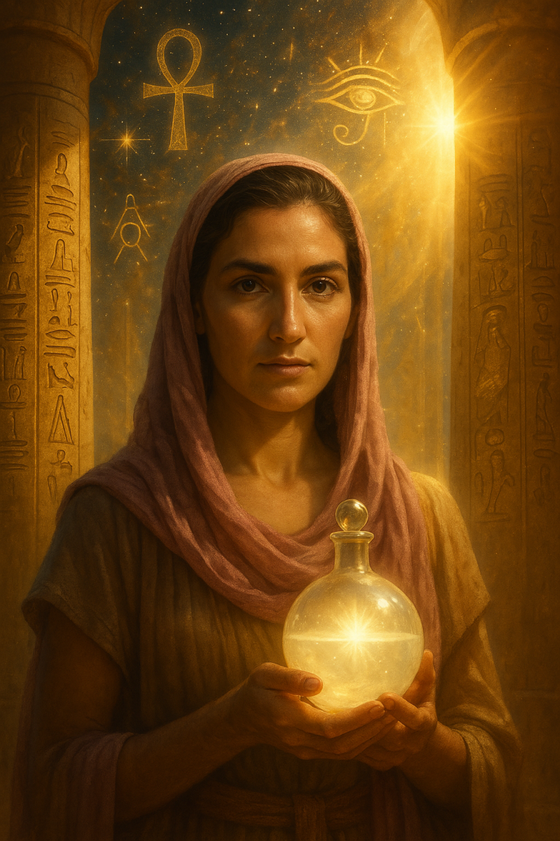 In de schaduw van de geschiedenis, tussen laboratoria vol elixers en tempels vol licht, leefden vrouwen die niet alleen de geheime taal van de materie spraken, maar ook die van de ziel. Zij waren de vrouwelijke alchemisten, genezeressen, mystica’s, priesteressen en filosofen die goud zochten in het innerlijk, elixers brouwden van licht en kennis, en formules uitschreven in dromen en visioenen.